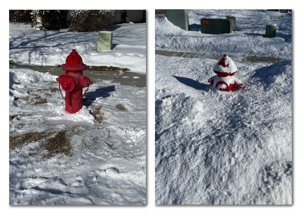 A quick winter reminder from the Northstar HOA – please work with your neighbors to keep our fire hydrants free of snow and accessible this winter. These pictures are both of Northstar neighborhood fire hydrants. If there is a fire emergency which hydrant would you rather be living by? Take a moment each time it snows to check the hydrant closest to your house and clear back the snow. Sharing the responsibility and work can help keep everyone in the neighborhood safe.